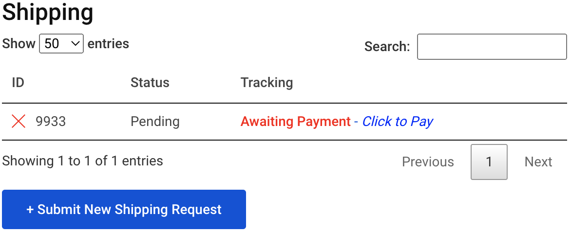 You may view & pay for any outstanding requests or you may initiate a new shipping request as desired.